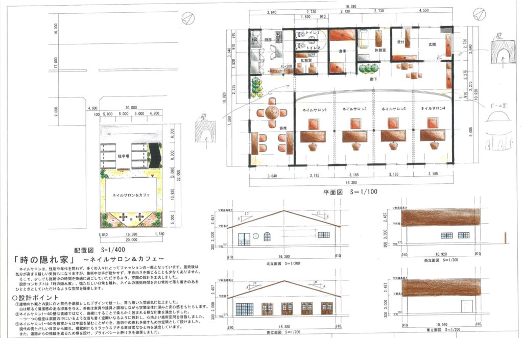 ①仮想設計 ・・・ 設定された敷地にネイルサロン・カフェを計画